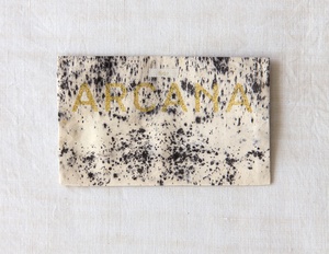 Limited Edition dosa / Arcana foil stamped utiltiy pouch. 5 1/4” x 8 1/4”. Organic cotton with organic pomegranate dye.