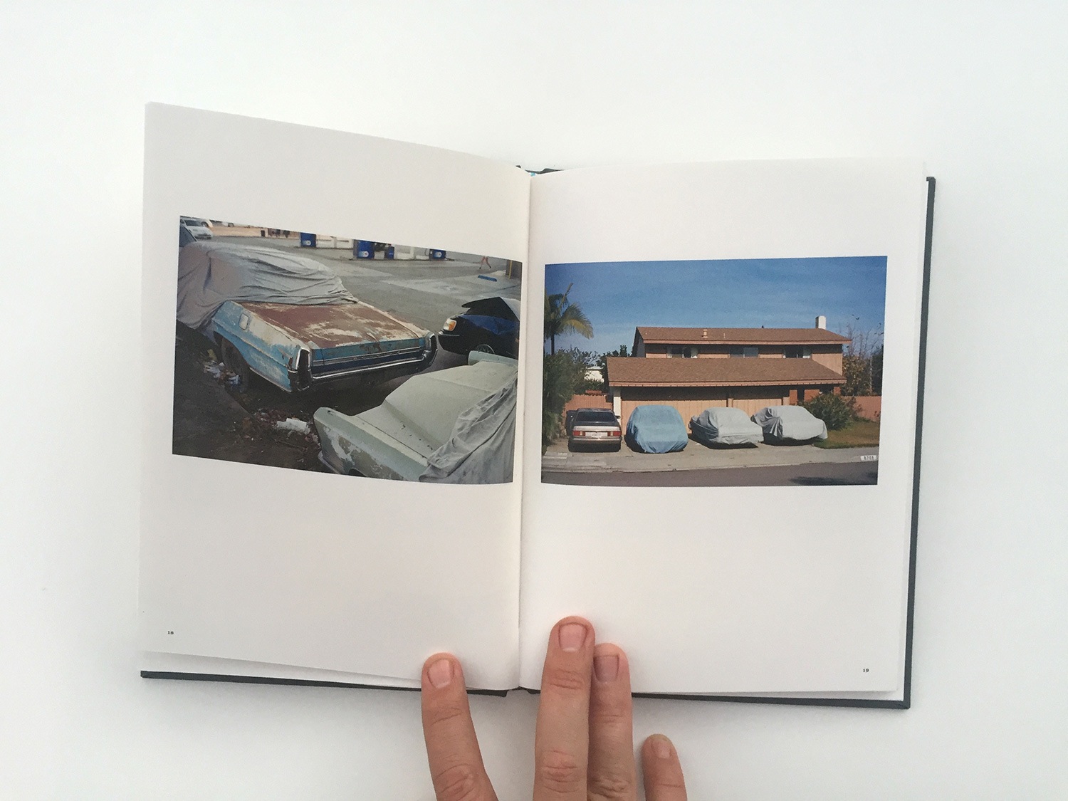 Book of the day > Clint Woodside – Undercover Cars. Kill Your Idols. Essay by Mike Slack. “What strikes me now, looking at this fresh new edit, is not the boring ubiquity of the subject matter – the deadpan Christo-like charm of all these tarps attached to all these automobiles (“hey, instant conceptual art!”) – but the manmade environments Woodside is showing us in the photographs, and the sense of walking-and-looking that the series implies. Never mind the covered cars; look at what surrounds them. the photos – mostly off hand, in various analog formats – are oddly alive with endearing residential architecture and everyday human habitation/habit (well-worn apartments and houses, painted garage doors, oil-stained driveways), and the familiar flora of Southern California (looming, disheveled palms; massive weird shrubs; dense, dark ficus trees; unruly ivy). The word “undercover” is especially apt here too, not only because “Clint Woodside” sounds like a character out of a classic LA film noir, but also because – in a strange twist – while the recurring subject of these pictures is “cars” (a quintessentially LA theme), the real subject remains hidden in plain sight: the intimate, everyday human narratives swirling around the cars. Woodside is just gathering evidence. As a series, Woodside’s “undercover cars” loosely documents a place and a time but they’re also a record of his photographic obsession, a long-term attachment to a simple theme from which more complex themes can emerge and evolve.” – Mike Slack