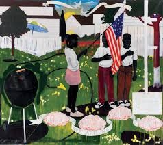 "We, the People, recognize that we have responsibilities as well as rights; that our destinies are bound together; that a freedom which only asks what's in it for me, a freedom without a commitment to others, a freedom without love or charity or duty or patriotism, is unworthy of our founding ideals, and those who died in their defense." Barack Obama, US President. "BANG" by Kerry James Marshall