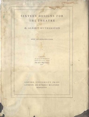 (RUTHERSTON, ALBERT). Rutherston, Albert. London: Oxford University Press, 1928. First Edition 1/475. Folio. Cloth in Dust Jacket. Fair/Fair. np, 16 collotype plates (10 in color), each with a printed overlay. The fourteen costume designs and two "curtain scenes" by Albert Rutherston included here date between 1912 and 1914 for two theatrical productions at the Savoy and St. James Theatres, as well as a ballet produced by Anna Pavlova in New York. A serviceable example only whose fragile dust jacket is present though chipped and torn in several places and showing significant paper loss to the rear panel along with moderate soiling, tape adhesive, and uneven staining from liquid on the front. Its boards are faded and worn bearing some mottling due to contact with liquid, particularly at the extremities. These condition flaws noted, the interior of the book (including all of the exquisitely colored plates) is remarkably clean, bright, and tight with only the front inside cover and endpaper having browned somewhat. It has been priced accordingly. Inventory Number: 000933