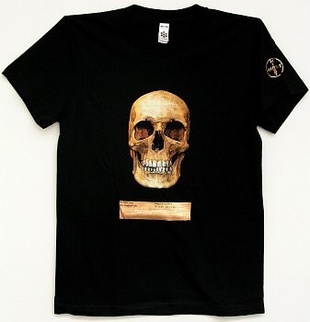 (HIRST, DAMIEN). Hirst, Damien. New York: Gagosian Gallery, 2006. Edition Not Stated - Presumed First. Small 4to. Printed T-Shirt. Fine.. This is the short-sleeved, standard black American Apparel T-shirt emblazoned with the image of a Damien Hirst skull on the front issued in conjunction with the artist's 2005 Gagosian Gallery New York exhibition entitled "The Elusive Truth". A brand new, pristine unworn example in men's size large. Inventory Number: 013361