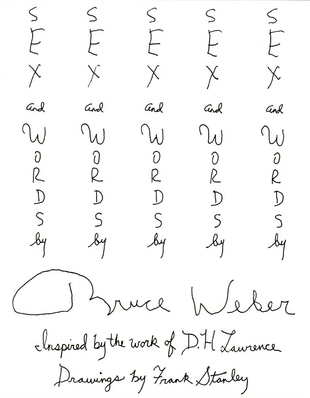 (WEBER, BRUCE). Weber, Bruce, Frank Stanley & D.H. Lawrence. New York: Visionaire Publishing, 2006. First Edition 1/2000. 8vo. Illustrated Wrappers. Photography Monograph. As New.. np (64pp), 16 b&w and 3 color illustrations. "Sex and Words" is a slender yet elegantly designed publication of Bruce Weber images inspired by the writings of D.H. Lawrence. It overlays the photographer's explicitly erotic male nudes with reproductions on vellum of drawings by Frank Stanley; all interwoven with excerpts from "Lady Chatterley's Lover", "Women in Love" and "Sons and Lovers". A brand new, pristine example still in the publisher's shrinkwrap. PLEASE NOTE: Due to the nudity contained in some of the content here, you must be at least eighteen years of age to order this item. Inventory Number: 014917