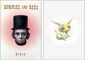 (RYDEN, MARK). Ryden, Mark & Mike McGee. New York & Santa Ana, CA: Earl McGrath Gallery & Grand Central Art Center, 2001. First Edition. 4to. Illustrated Wrappers. Artist Monograph. Very Good.. np (52pp), 50 color illustrations. With a biography, exhibition history and collections listing. In a protective clear acetate dustwrapper. This is the beautifully produced catalogue issued in conjunction with Mark Ryden's two "Bunnies and Bees" exhibitions of 2001 and 2002. Bunnies, bees, meat, Abraham Lincoln and scary childhood imagery abound in these paintings, attendant details and studies - all accompanied by the artist's narrative. A most presentable example showing a slight soft crease through the textblock at the lower foredge corner. It has been priced accordingly. 1-931955-00-X Inventory Number: 016880