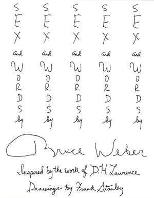 (WEBER, BRUCE). Weber, Bruce, Frank Stanley & D.H. Lawrence. New York: Visionaire Publishing, 2006. First Edition 1/2000. 8vo. Illustrated Wrappers. Photography Monograph. As New.. np (64pp), 16 b&w and 3 color illustrations. "Sex and Words" is a slender yet elegantly designed publication of Bruce Weber images inspired by the writings of D.H. Lawrence. It overlays the photographer's explicitly erotic male nudes with reproductions on vellum of drawings by Frank Stanley; all interwoven with excerpts from "Lady Chatterley's Lover", "Women in Love" and "Sons and Lovers". A brand new, pristine example still in the publisher's shrinkwrap. Inventory Number: 018927