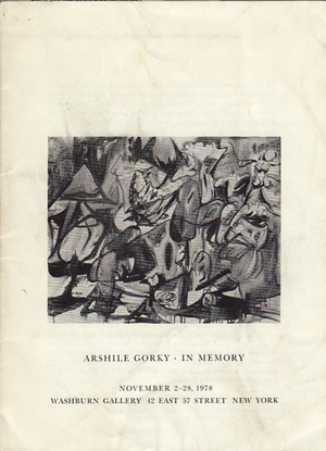 (GORKY, ARSHILE). Breton, Andre. New York: Washburn Gallery, 1978. First Edition. 8vo. Stapled Illustrated Wrappers. Artist Monograph. Good +.. np (10pp), 2 b&w illustrations + b&w cover. With an exhibition checklist. This is the slender ten page brochure cum catalogue published in conjunction with a posthumous 1978 Washburn Gallery exhibition of four paintings and ten works on paper executed between 1943 and 1947 by the renowned Armenian born Abstract Expressionist pioneer Arshile Gorky. It reprints Andre Breton's text on the artist produced for his first exhibition at the Julien Levy Gallery in 1945 as well as reproducing in facsimile the four page catalogue for Levy's Gorky memorial show of 1948. A presentable copy of this uncommon ephemeral item that was the only printed documentation of the event showing some overall wear, creasing, and light soiling. It has been priced accordingly. Inventory Number: 019095