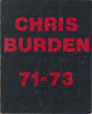 (BURDEN, CHRIS). Burden, Chris. Los Angeles: Chris Burden, 1974. First Edition. 4to. Printed Wrappers. Catalogue Raisonné. Good +.. 96pp, profusely illustrated in b&w. Designed by Chris Burden. In a protective clear acetate dustwrapper. This is the first of two early catalogues raisonné cum artist books privately published by Chris Burden detailing his own conceptually based performance work. It presents copious photographic documentation accompanied by the artist's own notes for each of twenty-three projects executed between 1971 and 1973. A most presentable example of this uncommon item showing noticeable overall wear, scuffing, and handling to its covers along with some mild soiling to the edges of the textblock. It has been priced accordingly. Inventory Number: 021312