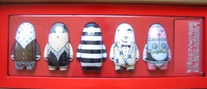 (VISIONAIRE). Edited By Gan, Stephen. New York: Visionaire Publishing, 2004. First Edition 1/2000. Narrow Oblong Folio. Fashion Quarterly. Very Good./No Jacket - As Issued. 5 polychrome vinyl figures housed in a red cardboard and plastic case, with a leporello pamphlet laid in. For their forty-fourth issue, Visionaire has partnered with vanguard toy manufacturer Kidrobot to create an original Visionaire soft vinyl figure, then further collaborated with ten world renowned fashion designers to customize that figure into ten different characters. The issue is released in two different sets (one red, one black) limited to two thousand copies each containing five toys, with an accompanying booklet picturing all ten designs. The characters and booklets are packaged inside a molded plastic and cardboard case. This set (red) features the designs by Dolce & Gabbana, Hedi Slimane, Marc Jacobs for Louis Vuitton, Miuccia Prada, and Viktor & Rolf. Kidrobot is the world's premier creator of limited edition art toys designed by world-renowned artists with backgrounds in graffiti and fine art, illustration, graphic and industrial design, and music. A handsome numbered example (0795/2000) whose interior plastic case and figurines are pristine while the publisher's protective cardboard box shows some creasing and dents. 1-888645-46-6 Inventory Number: 022241