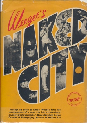 (WEEGEE). Fellig, Arthur, aka Weegee. Foreword by William McCleery. New York: Essential Books, 1945. Second Printing. Small 4to. Cloth in Pictorial Dust Jacket. Photography Monograph. Near Fine/Very Good -. 246pp, profusely illustrated in monochrome gravure. Designed by Henry Stahlhut and Michael Polvere. "Weegee's Naked City" is Arthur Fellig's (aka "Weegee The Famous") enormously influential first book of gritty images of the seamier, crime-riddled side of forties-era New York. Working mostly at night out of his improvised trunk-converted-into-a-darkroom, Weegee parlayed his police radio, trusty Speed Graphic camera, and an uncanny knack for getting to a crime scene quickly into journalistic infamy. An internally most handsome example of the 1945 Essential Books edition (cited on page 145 of Martin Parr and Gerry Badger's "The Photobook: A History Volume I", pages 142-143 of The Hasselblad Center's "The Open Book", and pages 118-121 of "The Book of 101 Books") in the smooth grey cloth binding whose vibrant yellow dust jacket states "Second Large Printing" on the inside front flap and shows some light soiling and creasing, a small area of surface paper loss at the upper foredge corner of the front cover, and a one inch missing chip at the at the top of the spine. Still in all, it is a very sharp copy of this Weegee classic whose rarely found dust jacket looks much nicer in hand than it describes. It has been priced accordingly. PLEASE NOTE: Additional shipping costs are required for this item beyond our standard rates due to its value - we will inform you of the applicable amount at time of purchase. Inventory Number: 024210
