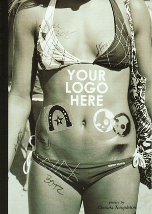 (TEMPLETON, DEANNA). Templeton, Deanna & Ed. Melbourne, AUSTRALIA: P.A.M., 2007. First Edition 1/1000. 8vo. Pictorial Wrappers. Artist's Book. As New.. np (32pp), profusely illustrated in b&w. "Your Logo Here" is Deanna Templeton's engaging new photo-essay capturing the phenomenon of young, bikini-clad girls (and even younger non-bikini clad boys) along the beaches of Southern California who willingly allow artists and manufacturers to sign, stick, airbrush. stencil and/or spraypaint logos onto their "tummies, breasts and thighs". Husband Ed provides an insightful essay into this local socio-sexual youth-culture marketing phenomenon. A brand new, most handsome example of the first edition limited to one thousand unnumbered copies additionally SIGNED "Deanna Templeton" in black ink on the title page. 0-9803696-1-4 Inventory Number: 024606