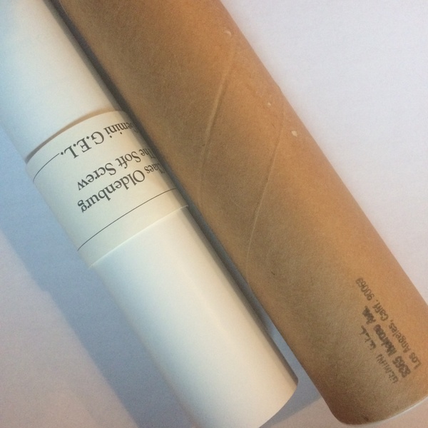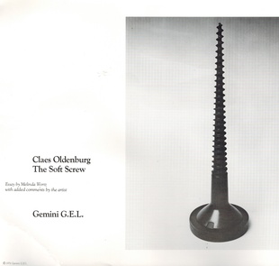 (OLDENBURG, CLAES). Oldenburg, Claes & Melinda Wortz. Los Angeles: Gemini G.E.L., 1976. First Edition. 4to. Rolled Printed Sheets. Print Prospectus. Fine.. Two 8 x 48" sheets joined to make a total 8 x 95" scroll printed in black and white offset recto and verso, 11 b&w illustrations. This is one of Los Angeles-based Gemini G.E.L.'s more unique print/multiple prospectuses announcing the publication of eight lithographs and a black urethane sculptural multiple after Claes Oldenburg's 1976 "The Soft Screw" project. A brand new, pristine example with the publisher's printed band of this exceedingly uncommon item - only six copies are currently cited in OCLC WorldCat - still in its original cardboard Gemini mailing tube with plastic closures. Inventory Number: 024811