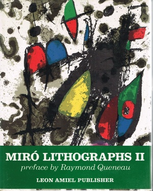 (MIRO, JOAN). Queneau, Raymond. New York: Leon Amiel Publisher, 1975. First English Language Edition 1/5000. 4to. Cloth in Illustrated Jacket. Catalogue Raisonné. Very Good/Near Fine. 256pp, profusely illustrated in color with a color lithographic cover. Text in English. This is the second of six volumes comprising the catalogue raisonné of the lithographic work by the renowned late Catalonian master Joan Miro. It contains one hundred and ninety-six fully illustrated entries for works executed between 1953 and 1963, as well as eleven bound in color lithographs and a color lithographic dust jacket printed by Mourlot that were commissioned exclusively for this publication. An internally bright, most handsome complete and intact example of the English language first edition of this invaluable reference (entry number XXX hundred and XXX in Patrick Cramer's "Joan Miro: The Illustrated Books - Catalogue Raisonné") limited to five thousand NUMBERED (1553/5000) copies showing some brown spotting along the top edge of the textblock that does not affect the lithographs in any way. PLEASE NOTE: Additional shipping costs are required for this item beyond our standard rates due to its weight and value - we will inform you of the applicable amount at time of purchase. 0-8148-0583-3 Inventory Number: 024986