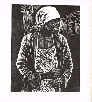 (CATLETT, ELIZABETH). Lewis, Samella & Elizabeth Catlett. Foreword by Maxine Waters. Claremont, CA: Hancraft Studios, 1984. First Edition 1/1000 Deluxe. 4to. Cloth in Pictorial Dust Jacket. Catalogue Raisonné. Near Fine/Near Fine. 194pp, profusely illustrated in color and b&w. Designed by Robert Biddle. With a biography and bibliography. This is the lavishly produced 1984 monograph cum catalogue raisonné of the graphic work by the noted late African-American artist Elizabeth Catlett. Still the most comprehensive document of her printed work to date, it features a significant text by Samella Lewis with contributions by the artist along with scores of previously unpublished images. An internally most handsome example of the uncommon deluxe hardbound edition of this important publication limited to one thousand copies NUMBERED (131/1000) AND SIGNED "E Catlett" in silver ink on the front pastedown showing a bit of light wear and creasing to the dust jacket. Laid in is Catlett's graphically striking 9 ½ x 7 1/8" linoleum block print from 1983 entitled "Survivor" that is TITLED, NUMBERED, SIGNED, AND DATED "Survivor / 131/1000 / E Catlett '83" in pencil along the bottom margin, as issued. The sheet shows some light foxing along the top and right edges that in no way affects the print image. While the limitation states that one thousand of these deluxe versions were produced, its relative scarcity in the marketplace seems to indicate that only a portion were actually distributed, and it is increasingly unusual to find copies of the print still paired with the book. Additionally laid in is the publisher's "A Note on the Production on The Art of Elizabeth Catlett" brochure. 0-941248-06-2 Inventory Number: 025300