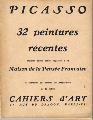 PICASSO: 32 PEINTURES RECENTES (CHOISIS PARMI CELLES EXPOSEES A LA MAISON DE LA PENSEE FRANCAISE ET EXTRAITES DU NUMERO EN PREPERATION DE LA REVUE CAHIERS D'ART)