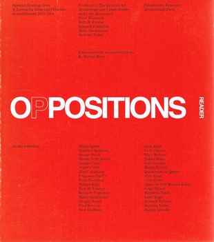 (OPPOSITIONS). Hays, K. Michael, Editor. New York: Princeton Architectural Press, 1998. First Edition. Stout 4to. Printed Wrappers. Architecture Journal. Very Good.. 704pp, profusely illustrated in b&w. Designed by Massimo Vignelli and Julia Bloomfield. With contributors' biographies and a complete index to "Oppositions". In a protective clear acetate dustwrapper. "In its eleven year history, "Oppositions" - the journal of the New York-based Institute for Architecture and Urban Studies (IAUS) - had an impact far beyond what its modest cover might suggest. Indeed, the journal set the agenda, introduced the key players, and published the seminal pieces in the theorization of architecture during the seventies and eighties. It is a testament to its enduring importance of the journal that its issues are still highly sought after today, prized (and priced) as collector's items, and found behind the desk at virtually every architectural library. For "Oppositions Reader", Harvard Professor K. Michael Hays has selected the most important essays from all twenty-six issues. Essays from the editors of the series - Peter Eisenman, Kenneth Frampton, Mario Gandelsonas, Anthony Vidler, and Kurt W. Forster - are included, along with texts by such noted architects, theorists, and historians as Aldo Rossi, Alan Colquhoun, Leon Krier, Denise Scott Brown, Bernard Tschumi, Rem Koolhaas, Mary McLeod, Giorgio Ciucci, and Rafael Moneo. Additional contributors include Diana Agrest, Stanford Anderson, George Baird, Denise Scott Brown, Stuart Cohen, Alan Colquhoun, Francesco Dal Co, William Ellis, Giorgio Grassi, Fred Koetter, Le Corbusier, Joan Ockman, Martin Pawley, Quatremere de Quincy, Colin Rowe, Ignasi de SolĂ -Morales Rubio, Jorge Silvetti, Manfredo Tafuri, Karel Teige, and Hajime Yatsuka. It is an understatement to say that this volume is indispensable for any scholar or student interested in contemporary architectural theory". An internally bright, most handsome example of the 1998 paperbound first edition of this uncommon, much sought-after compilation showing light wear, rubbing, and handling to the covers along with some typical mild sunning along the spine. It has been priced accordingly. 1-56898-153-8 Inventory Number: 025646