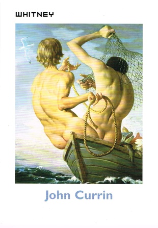 JOHN CURRIN  (CURRIN, JOHN). Rinder, Lawrence. New York: Whitney Museum of American Art, 2003. First Edition. 8vo. Illustrated Wrappers. Exhibition Brochure. As New.. One 9 ½ x 27" cardstock sheet printed recto and verso, neatly folded in quarters to make 8pp, 7 color illustrations. With a biography and exhibition history. This is the slender eight page exhibition brochure published in conjunction with the 2003 retrospective of John Currin's smart, art historically-informed portraits as displayed at New York's Whitney Museum of American Art. A brand new, most handsome example of this uncommon ephemeral item. Inventory Number: 025766