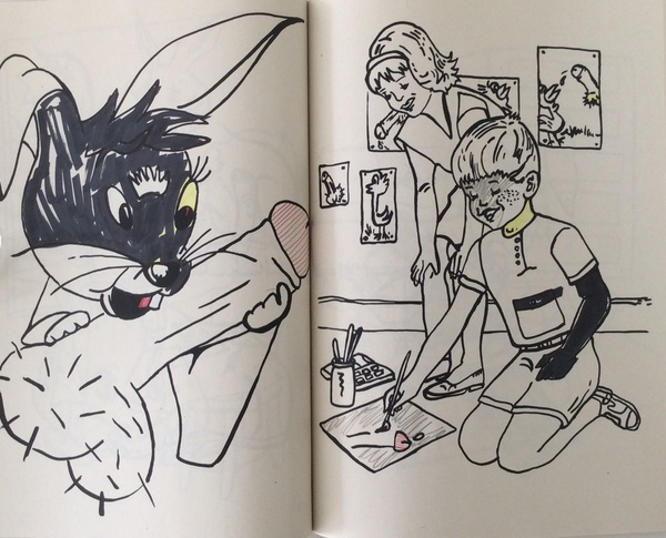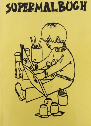 (MAJERUS, MICHEL). Majerus, Michel. NP: Self-Published, 1993. First Edition Hors Serie. 4to. Illustrated Wrappers. Artist's Multiple. Fine.. np (76pp), 75 b&w illustrations - thirty-two of which have been additionally uniquely hand colored. Designed by Michel Majerus. In a protective clear acetate dustwrapper. "Supermalbuch" is late Belgian artist Michel Majerus' self-published 1993 decidedly not-for-children coloring book. It reproduces seventy-five crudely drawn depictions of genitalia, masturbation, underage sex, bestiality, and other scatological delights. Produced in a signed and numbered edition of fifty printed paperbound books, it is unclear how many of these were ever actually distributed, and the Estate of Michel Majerus has classified "Supermalbuch" as a unique artwork rather than simply a publication by the artist. A bright, most handsome hors serie example of this exceedingly uncommon item - not a single copy is cited in OCLC WorldCat - that is neither signed nor numbered acquired directly from the library of a noted art dealer that has additionally had thirty-two of the illustrations embellished - perhaps by Majerus' own hand? Inventory Number: 025980