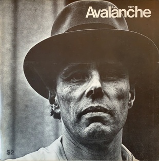 (AVALANCHE). Sharp, Willoughby, Publisher. Liza Bear, Editors. New York: Avalanche & Kineticism Press, 1970. First Edition. Small Square 4to. Stapled Pictorial Wrappers. Periodical. Near Fine.. 71pp + advertisements, profusely illustrated in b&w. Cover image - Joseph Beuys by Shunk-Kender. This is the very first installment of New York's premier Conceptual Art periodical of the seventies, "Avalanche". In addition to the "Rumbles" news section and advertisements for virtually every gallery on the planet showing Minimal and/or Conceptual work at the time, it contains transcribed interviews with artists Carl Andre, Michael Heizer, Dennis Oppenheim, Robert Smithson, and Jan Dibbetts, pieces on Richard Long, MoCA San Francisco, and Reese Palley Gallery, as well as a contribution by Robert Morris. A bright, most handsome example of this uncommon item. Inventory Number: 026127
