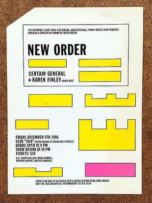 LAWRENCE WEINER: HANDBILL FOR NEW ORDER, CERTAIN GENERAL + KAREN FINLEY AT CLUB "1018"