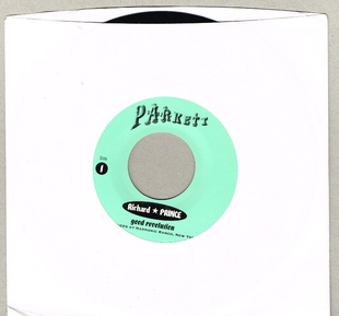 (PRINCE, RICHARD) (PARKETT). Prince, Richard. Zurich, SWITZERLAND: Parkett, 1992. First Edition. 45 RPM Single + Sleeve. Artist Multiple. Near Fine./Fine.. PRINCE, RICHARD) (PARKETT). Prince, Richard. Zurich, SWITZERLAND: Parkett, 1992. First Edition. 45 RPM Single + Sleeve. Artist Multiple. Near Fine./Fine.. One 7 inch, 45 rpm vinyl record in white paper sleeve. This double-sided single contains two compositions arranged and performed by Richard Prince entitled "Good Revolution" (1:46) and "Don't Belong" (1:46). These were recorded and mixed by Soul Coughing's Mark Degli Antoni at Harmonic Ranch in New York in 1992 as for use as a component of Prince's limited edition multiple entitled "Good Revolution" for Parkett number 34. Issued in a numbered edition of one hundred copies, the artwork consisted of a gold-plated version of this record, engraved plaque, and chromogenic color print mounted in a framed plaque that mimicked an RIAA gold record award. THIS IS NOT THAT ARTWORK, NOR IS IT SIGNED. This is a standard, unplayed 7" 45 rpm black vinyl single suitable for play on a turntable. A most handsome hors commerce example of this exceedingly uncommon item that was presented by the artist to a colleague at the time of its issue housed in its original unprinted white sleeve showing some mild surface wear. Inventory Number: 026367
