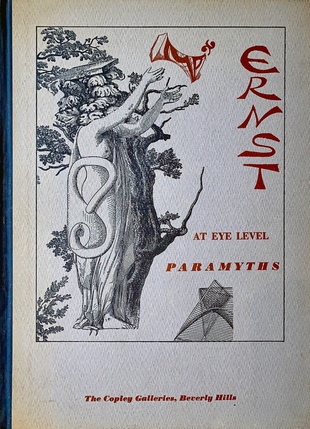 (ERNST, MAX). Ernst, Max. With brief texts by Andre Breton, Piet Mondrian, Rene Crevel, Paul Eluard, Dorthea Tanning, J.F.P., Benjamin Peret, Man Ray, Robert Desnos & Nicolas Calas. Beverly Hills, CA: The Copley Galleries, 1949. First Edition #121/513. 8vo. ¼ Cloth Over Pictorial Boards. Artist Monograph. Very Good/No Jacket - As Issued. 39pp, 24 monochrome illustrations. Designed by Max Ernst. Printed by Lynton Kistler. Frontispiece photograph by Frederick Sommer. With an exhibition checklist. In a protective clear acetate dustwrapper. This charming, elaborately designed and produced exhibition catalogue cum artist's book was published in conjunction with a 1949 show of sixty-six works executed between 1918 and 1948 by renowned Dada and Surrealist artist Max Ernst at the Beverly Hills gallery of William Nelson Copley - a.k.a artist Cply. The first portion - "At Eye Level" - contains brief Surrealist and Ernst-related texts and quotes by a stellar array of artists and literary figures that includes Andre Breton, Piet Mondrian, Rene Crevel, Paul Eluard, Dorothea Tanning, J.F.P., Benjamin Peret, Man Ray, Robert Desnos, and Nicolas Calas. The second - "Paramyths" - is a series of eight poems and collages executed by the artist especially for this volume. A handsome, tightly bound example of this fragile, uncommon item limited to five hundred and thirteen copies NUMBERED (121/513) in ink on the rear colophon, as issued, showing some typical soiling and slight discoloration to its matte, textured boards, unobtrusive mottling to the blue cloth of the spine, and a small area of surface paper abrasion to the rear board. Internally, there is a tiny bit of mild foxing to a few pages throughout along with occasional discoloration and perished glue at the gutter of some of the pages. Inventory Number: 026378