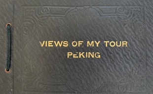 Author Not Stated. NP (Likely Peking, CHINA). ND (Circa Early 1930s).: No Publisher Stated. Edition Not Stated. Oblong 8vo. Gilt-Stamped Boards with Ties. Photographic Album. Near Fine/No Jacket - As Issued. 100pp, 100 individual 3 ¼ x 5 ½" black and white silver gelatin photographs. Text in English. In a protective clear acetate dustwrapper. Measuring 5 ¼ x 8 ¼" and gilt-stamped "Views Of My Tour / Peking" across its decoratively-embossed front cover, this is an elegant, professionally produced souvenir photo album likely made in Peking for the English-speaking Chinese tourist market sometime between the mid-twenties and the mid-thirties. Hand-assembled rather than printed, with no publication information other than the front cover title, its contents are one hundred vintage black and white silver gelatin prints of Chinese views loosely inserted into sequential album pages with typewritten captions in English glued below. Primarily architectural or archaeological in nature, the images depict Peking's Forbidden City, Temple of Heaven, Lama Temple, Hall of Classics, Summer and Winter Palaces, Ming Tombs, various Pagodas and street scenes, and The Great Wall of China. A most handsome example of this uncommon item whose photographs are bright and well-preserved showing a tiny bit of flaking of the gilt title stamping and some crimping to the tips of the first few pages at the lower foredge corner that in no way affects the prints. Inventory Number: 026729