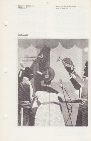(BEARDEN, ROMARE). M(iller)-K(eller), Andrea. Hartford, CT: Wadsworth Atheneum, 1975. First Edition. 8vo. Printed Wrappers. Artist Monograph. Fine.. np (4pp), 1 b&w illustration. With an exhibition checklist, exhibition history and bibliography. This is the slender four page brochure published in conjunction with a 1975 exhibition of six collages by the venerable African-American artist Romare Bearden held at Hartford's Wadsworth Atheneum. A most handsome copy of this uncommon ephemeral item that was the only printed documentation of the event. Inventory Number: 026736