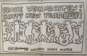 KEITH HARING: "FROHE WEIHNACHTEN! / HAPPY NEW YEAR 1989!" SILKSCREEN PRINT FOR GALERIE HANS MAYER