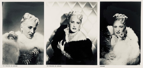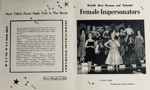 "FABULOUS" FINOCCHIO'S: A SOUVENIR MAILER FROM SAN FRANCISCO'S HOME TO "THE WORLD'S MOST FAMOUS AND TALENTED FEMALE IMPERSONATORS" + THREE PHOTOGRAPHS OF PERFORMER "THE FABULOUS LEE LEONARD"