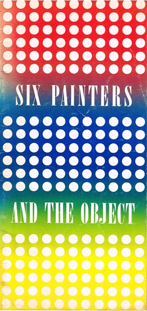 Alloway, Lawrence. Foreword by Thomas M. Messer. New York: The Solomon R. Guggenheim Museum, 1963. First Edition 1/3000. Tall 8vo. Stapled Decorative Wrappers. Exhibition Catalog. Very Good.. np (14pp), 6 b&w illustrations. With an exhibition checklist and bibliography. Designed by Herbert Matter. In a protective clear acetate dustwrapper. One of the very first American Museum surveys of Pop Art, the Guggenheim Museum's "Six Painters and The Object" was the predecessor to curator Lawrence Alloway's exhibition of West Coast artists held later that same year at the Los Angeles County Museum of Art entitled "Six More". His prescient selection of participants included Jim Dine, Jasper Johns, Roy Lichtenstein, Robert Rauschenberg, James Rosenquist, and Andy Warhol. A handsome example of this exceedingly uncommon, seminal document showing some mild wear and creasing to its rainbow-hued covers. Inventory Number: 027417