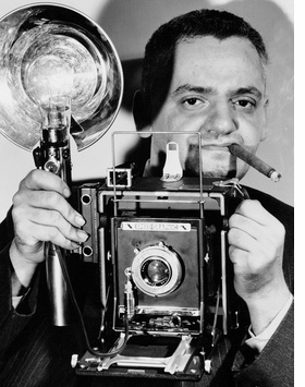 Weegee wandered the streets of 1940s New York at night looking for lovers, corpses and criminals to shoot for tabloid readers who “had to have their daily blood bath and sex potion to go with their breakfast” (as Weegee put it with characteristic flair). His images crackle with visual puns, blinding flashes and complex compositions; they display the bawdy sensationalism of the tabloids they were shot for and the stylishness of the film noir cinema that took inspiration from them.