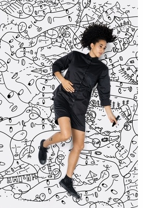 London-born, New York–based artist Shantell Martin (born 1980) is best known for her signature black-and-white drawings. She has had solo shows at 92Y Gallery and the Museum of Contemporary African Diasporan Arts, New York. Martin has collaborated with brands such as Nike, Max Mara, and Tiffany & Co., as well as with the New York City Ballet and Kendrick Lamar.