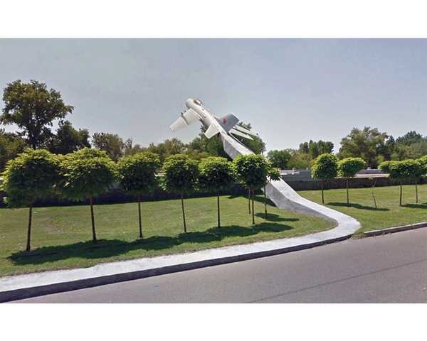 From remote rural roadsides to densely populated cities, the photographs reveal traces of history in plain sight: a brutalist hammer and sickle stands in a remote field; a jet fighter is anchored to the ground by its concrete exhaust plume; a skeletal tractor sits on a cast-iron platform; a village sign resembles a constructivist sculpture. Passersby seem oblivious to these objects. Relinquished by the present they have become part of the composition of everyday life, too distant in time and too ubiquitous in nature to be recorded by anything other than an indiscriminate automaton.