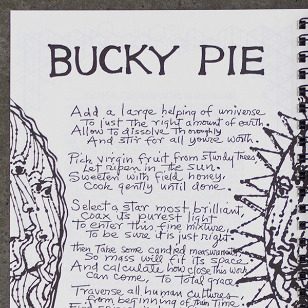 Constructed around 100 achievable recipes, this book is a glimpse into Fuller’s life, as told by his peers. A few of the recipes are a joyful ode to Fuller’s oeuvre, such as Shirley Sharkey’s “GEODESICANDY,” the “Macrobiotic Diet” by John Cage or Amy Edmondson’s “Allspace-Filling Whole Wheat Bread.”
