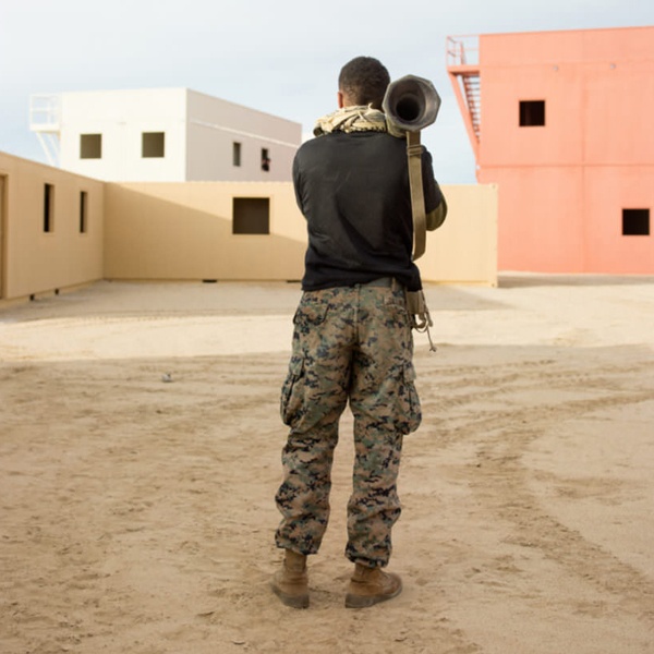 What are the stories we tell ourselves, the games we play, to manage unsettling realities? Made on ten military bases across the United States since 2016, Necessary Fictions documents mock-village landscapes in the fictional country of “Atropia” and its denizens, roleplayers who enact versions of their past or future selves in realistic training scenarios.