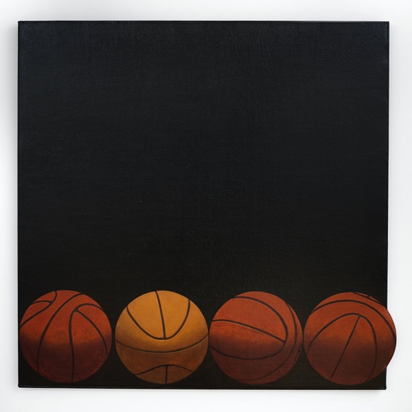 In his Basketball series, Hendricks applied his keen compositional sense and stylish use of color to depictions of the sport’s essential elements: hoops, nets, backboards and, of course, basketballs themselves. In one painting, the image of a basketball about to make its way into a hoop is repeated twice on a round canvas; on another circular canvas, the iconic black ribs of a basketball are rendered in a bold orange to create a minimalistic yet instantly recognizable pattern.