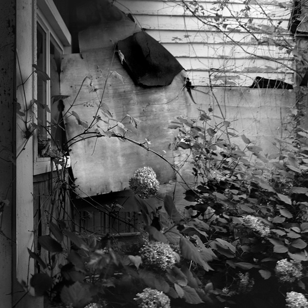 Meeks has long been fascinated by the way we construct the world around us; how we carry our possessions, these accumulated comforts, inheritances, markers of material success; how we adorn homes with trees and shrubs, a mantle clock to count the hours. Stumbling across an abandoned house or unkempt lawn becomes a search for common clues to tiny hidden transgressions.