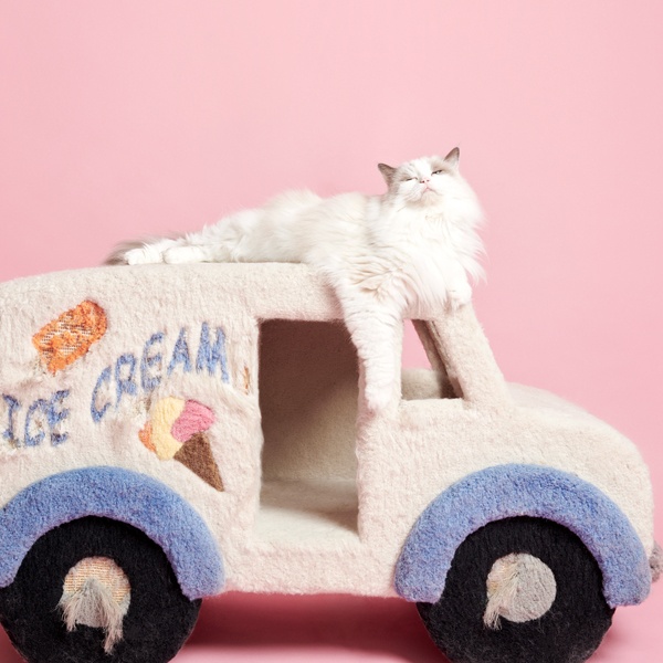 Against stylish pastel backdrops, Swiss photographer Pascale Weber poses her feline subjects on a variety of different cat-specific pieces, lounging on the roof of a fuzzy ice cream truck and balancing atop a three-pronged scratching post that resembles a cactus. Her photography series captures the undeniable charm of cats on their best behavior while also providing a tongue-in-check echo of more serious forms of design. The artfulness of each cat tree mirrors the contemporary aesthetic trends of human-sized architecture and sculpture: multifaceted, functional and ultimately representative of those who utilize such structures. Each cat presents their home just as proudly as a person might in this surprising combination of art and animal photography, perfect for cat lovers and art enthusiasts alike. 9783775748551 Inventory Number: I00210417