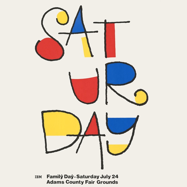 One of the designers he hand-picked was Ken White, who, along with John Anderson and Tom Bluhm, headed up the design team at the IBM Design Center in Boulder, Colorado. Together, they initiated a poster program as a platform for elevating internal communications and initiatives within the company. These posters were displayed in hallways, conferences rooms and cafeterias throughout IBM campuses, with subject matter including everything from encouraging equal opportunity policies to reminders on best security practices to promoting a family fun day. Designers often incorporated figurative typography, dry humor, visual puns, and photography to craft memorable and compelling messages. Many of the posters won Type Directors Club awards and a large number were ‘re-appropriated’ from walls by enthusiastic IBM employees.