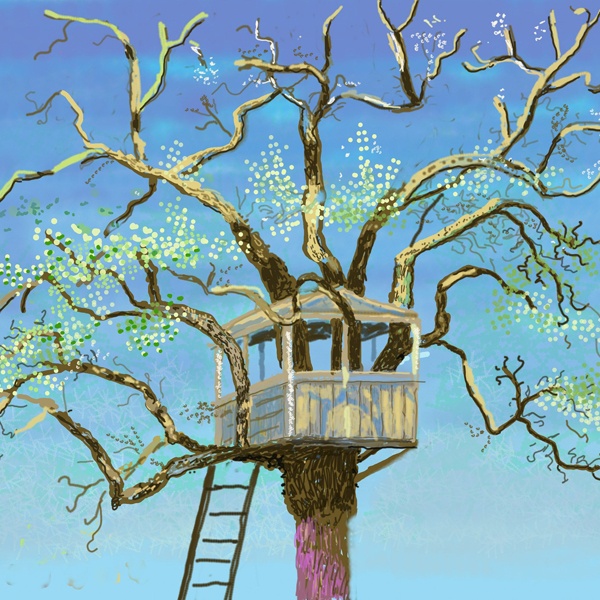 At the beginning of 2020, just as global COVID-19 restrictions were coming into force, David Hockney was at his new house, studio and garden in Normandy. From there, he witnessed the arrival of spring, and recorded the blossoming of the surrounding landscape on his iPad, a method of drawing he has been using for over a decade.