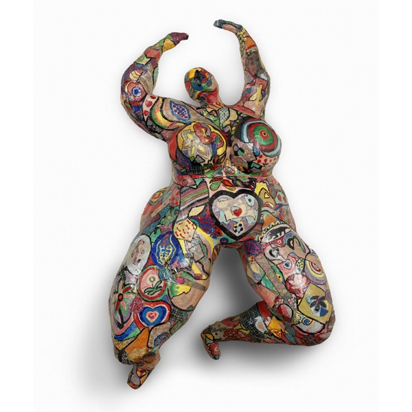 Tirs were made by firing a .22 caliber rifle at the surfaces of paintings. The bullets pierced bags of pigment, aerosol paint cans, or even food embedded in dense assemblages covered in painted plaster. Saint Phalle’s increasingly liberated female figures with outstretched arms, curvaceous forms, and powerful poses developed into her well-known Nanas, an evolution contemporaneous with the rise of a Euro-American feminist movement. 9780300260106 Inventory Number: I00210910