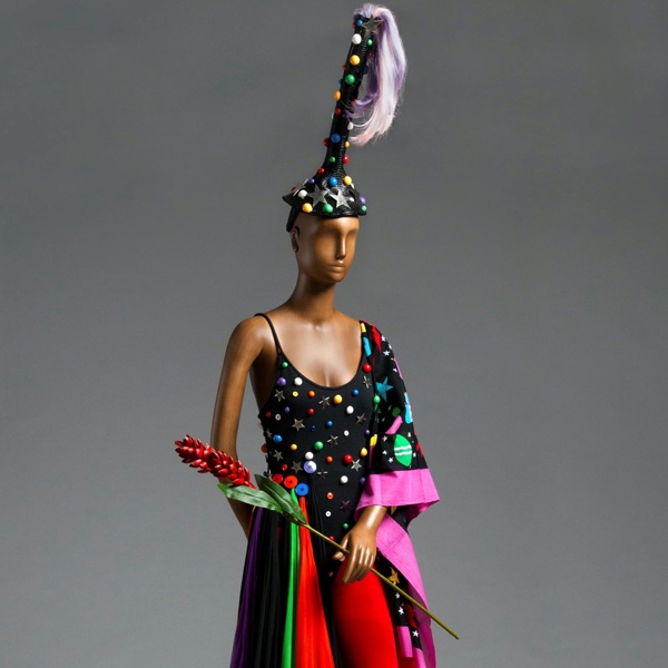 Patrick Kelly (1954–1990) was known for his bold, bright, and joyful fashion creations that resonated in the streets and nightclubs and on the runways of New York, Paris, and beyond. The first American and the first Black designer to be admitted to the governing body of the French fashion industry, Kelly boasted celebrity couture clients including Madonna, Cicely Tyson, and Gloria Steinem. His designs are distinguished by a combination of playful aesthetics and a willingness to brazenly foreground race and heritage and push cultural boundaries, including racial tropes like golliwogs, or Black baby dolls.