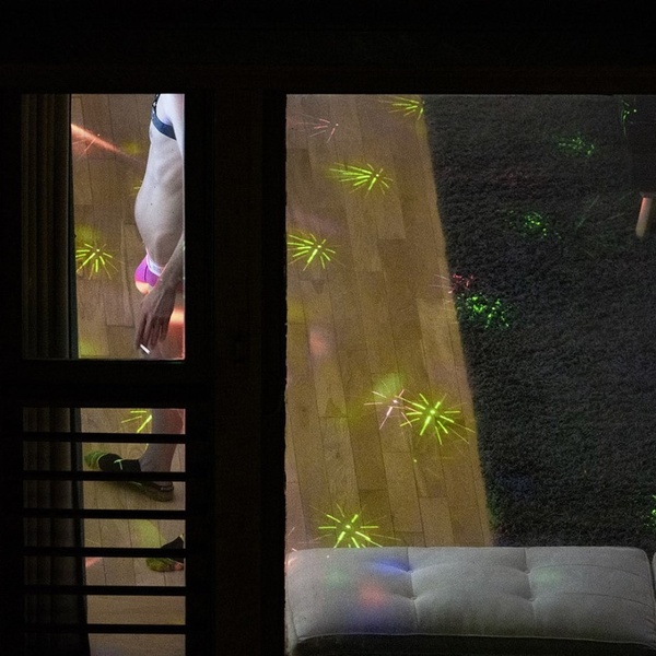 Staying home day and night with a desire to remain creative during the quarantine, Lott began shooting photographs from his DTLA loft of the residential building across the street. He became entranced with peeking into the private lives of others during the pandemic, capturing their behavior and activities in candid moments. These images are not portraits and he avoids showing complete faces. They are moments in time; a time of great uncertainty and fear. The final images simply reveal a knee, an edge of the face or just a headless body with the face obscured by architecture, plants, furniture or props. Metaphorically, Lott challenges the notion of the face being the site of our individuality, thus these faceless bodies articulate the evacuation of individual selves in the age of digital information.