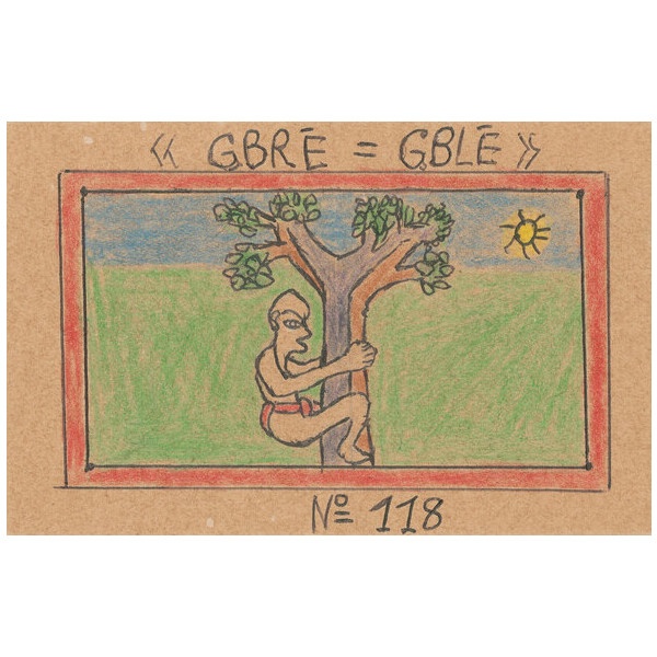 The Ivorian artist Frédéric Bruly Bouabré created an unmistakable and entirely unique body of work, first as a writer and linguist, and then in a dazzling series of colorful drawings on a multitude of subjects, from his native Bété culture to the urban milieu of Abidjan to the all-encompassing themes of fraternity, equality and global understanding. All but unknown even in his home country of Côte d’Ivoire, Bouabré found international recognition in 1989 when he participated in the landmark Paris exhibition Magiciens de la terre, and his work has since been the subject of solo and group exhibitions around the world.
