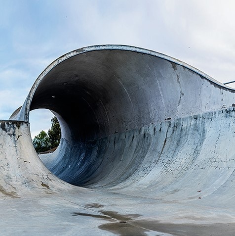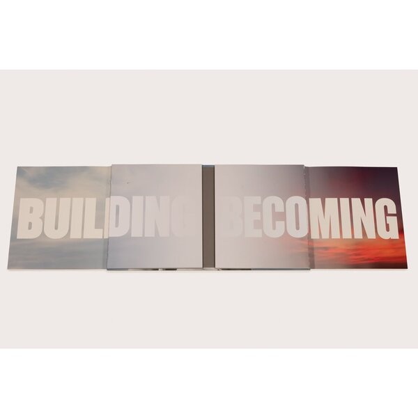 Building + Becoming is a sculptural monograph, designed as a double gatefold which opens to a full width of roughly forty inches, allowing the reader to explore both sets of images and texts in different combinations. The multiple series by Zaki captured within these sets address, respectively, the built and the natural, including rocks, carvings, suspended landscapes, and manipulated California beach architecture. Like his skateparks these environments are uncannily quiet and devoid of people.