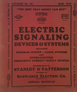 1936 FARADAY ELECTRIC SIGNALING APPARATUS A.I.A. FILE NO. 31-I / CATALOG NO. 49 (ELECTRIC SIGNALING DEVICES & SYSTEMS INCLUDING PROGRAM CLOCKS - CLOCK SYSTEMS AND HYDRO-ELECTRIC EMERGENCY CURRENT SUPPLY OUTFITS MANUFACTURED BY STANLEY & PATTERSON)