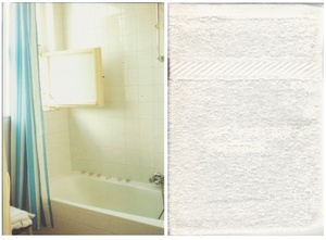 (TZIDON, ROY). Tzidon, Roy & Chad Rea. Amsterdam, THE NETHERLANDS. ND (2001).: Hans Brinker Budget Hotel. First Edition. 8vo. Pictorial Boards. Photography Monograph. Near Fine/No Jacket - As Issued. np, profusely illustrated in color and b&w. Art Direction by Erik Kessels. Designed by the great Erik Kessels (of KesselsKramer renown), this is Roy Tzidon's idiosyncratic book of erotic photography set in Amsterdam's notorious Hans Brinker Budget Hotel. A favorite of students, backpackers and sightseers on a budget, the five hundred and thirty-four bed self-proclaimed "Worst Hotel in the World - now with even more dogshit in the main entrance" has been "proudly disappointing travellers for forty years". For two months in 2000 the photographer rented Room 412 - the only one in the entire establishment with a full bathtub - and invited Hotel staff, guests, and street performers to come up to the room to bathe with the proviso that they allow themselves to be photographed for public consumption. This book, used as promotion for the Hans Brinker Budget Hotel, is the result. A most handsome example of this uncommon, charming item in the publisher's custom-embroidered white terrycloth bag, as issued. Inventory Number: 021698