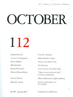 OCTOBER 112: ART/ THEORY/ CRITICISM/ POLITICS - SPRING 2005