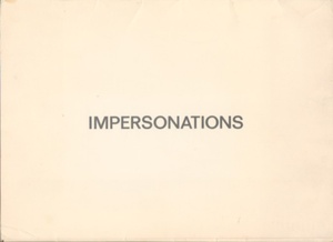 (GRIEGER, SCOTT). Grieger, Scott. NP (Los Angeles): Self-Published, 1970. First Edition. Oblong Small 4to. Loose Plates in a Portfolio. Artist's Book. Very Good +.. Fifteen individual 7 ½ x 10 ¼" plates printed offset recto only, 15 b&w illustrations. Self-published in 1970, "Impersonations" is Los Angeles-based artist Scott Grieger's wildly hilarious, photographically illustrated artist's book of send-ups of iconic works by many of the then-prevailing luminaries of Pop, Conceptual and Minimal Art. Using the photographic studio and some darkroom magic, the hirsute Grieger clad in jeans, desert boots, and a white t-shirt substitutes himself for artworks ranging from a Barnett Newman "zip" to one of Robert Irwin's illuminated disc paintings. The fifteen artists receiving these wry homages are Ronald Bladen, Tony DeLap, Robert Grosvenor, Irwin, Les Levine, Sol LeWitt, John McCracken, Robert Morris, Newman, Claes Oldenburg, Robert Rauschenberg, George Rickey, Richard Serra, Robert Smithson, and Ernest Trova. The "Impersonations" photographs were subsequently shown in MoMA's landmark 1970 Conceptual Art exhibition "Information", the 1972 Whitney Annual, "Los Angeles '72" at New York's Sidney Janis Gallery, and were the subject of a 2007 retrospective with catalogue at the Nora Eccles Harrison Museum of Art at Utah State University. The work fits in nicely with parallel body-centric photographic excursions by the likes of Bruce Nauman, Chris Burden and Vito Acconci - albeit with a more overt tongue in cheek approach. A bright, handsome example of this exceedingly uncommon - only five copies are currently cited in OCLC WorldCat - and underappreciated gem whose glossy white printed paper portfolio shows some typical creasing along the edges along with a slight stain at the upper right corner of the rear panel. Inventory Number: 022630
