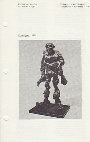 (DE KOONING, WILLEM). M(iller)-K(eller), A(ndrea). Berkeley, CA: University Art Museum, the University of California Berkeley, 1978. First Edition. 8vo. Printed Wrappers. Artist Monograph. Near Fine.. np (4pp), 1 b&w illustration. With an exhibition checklist, exhibition history and bibliography. This is the slender four page exhibition brochure cum catalogue published in conjunction with a 1978 Matrix exhibition of Willem De Kooning's sculpture at the University Art Museum, the University of California Berkeley. A handsome example of this uncommon ephemeral item that was the only printed documentation of the event. Inventory Number: 019491