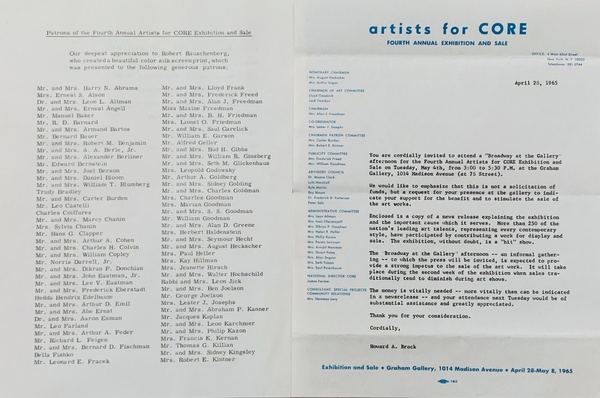 ARTISTS FOR CORE: FOURTH ANNUAL EXHIBITION AND SALE APRIL 28 - MAY 8, 1965.